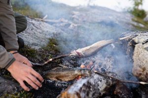 Die Nahrungsbeschaffung bei einer Expedition oder Fernreise ist viel energiesparender und effektiver als bei der Hoch- oder Niederwildjagd. Der Angelertrag in den kristallklaren Bergseen in Schweden ist so hoch, dass jeder Expeditionsteilnehmer täglich satt wurde.